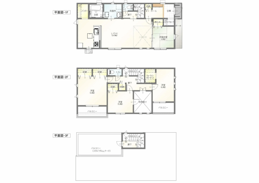 また、間取りの自由度も高くなり、広々LDK+3〜4部屋、LDK+2〜3部屋+土間収納やウォークインクローゼット(WIC)など、家族構成やライフスタイルに合わせてゆとりある住まいを実現できます。