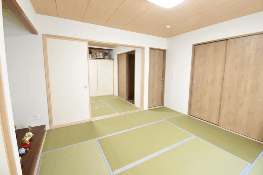 また、本家という立場を踏まえ、隣接する6畳の和室と8畳をつなげられるようにしたのもこだわりポイントです。襖を開け放すことで、家族や親戚などが集まる大広間として利用できます。