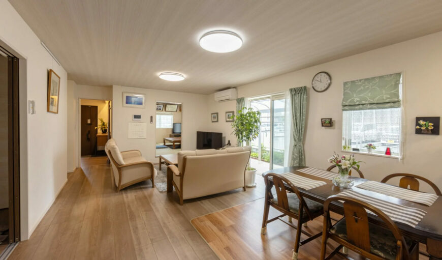 自然光を最大限取り込む大きな窓で、日当たりも風通しも良好。明るく開放感のある居住空間で、季節を問わず快適に過ごせます。
