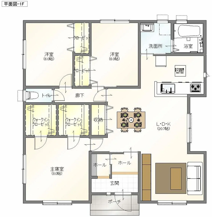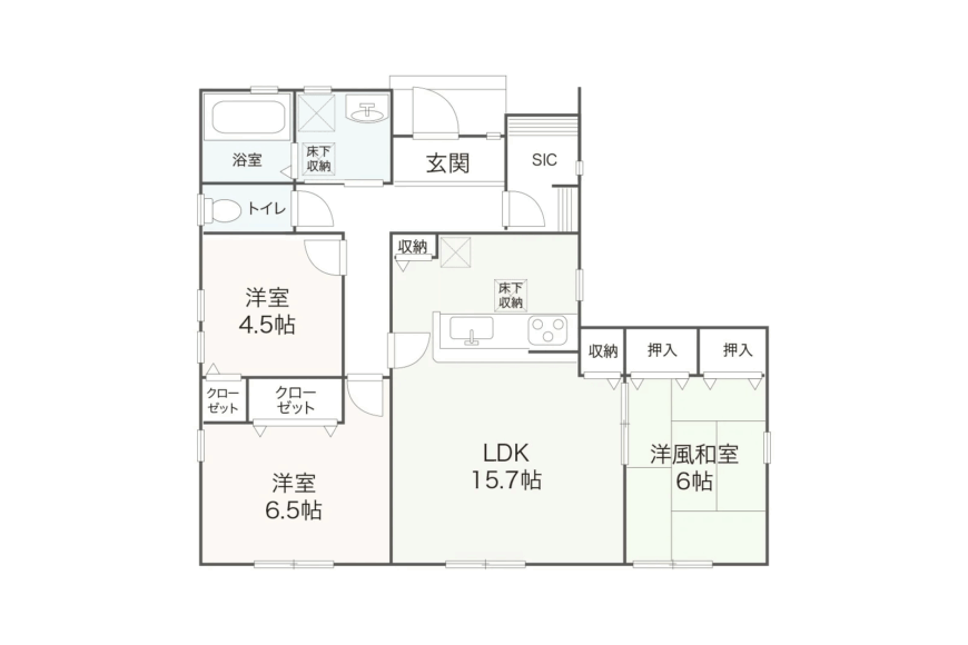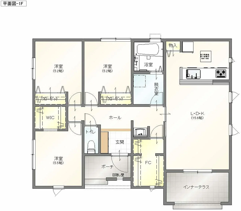 - 居室にWIC(ウォークインクローゼット)を設け、収納力を高める