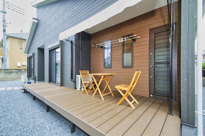 縁側にはアウトドア感を楽しめるよう、ウッドデッキも設けました。