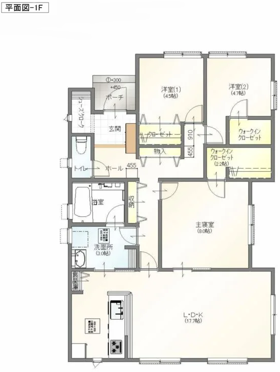 平屋ではワンフロア(1階部分)にすべてを納める必要があるため、部屋と収納スペースのバランスを取るのが難しい場合もあるでしょう。