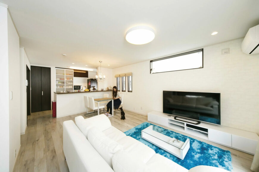 こちらの住宅は、2面のスリット窓を採用することで自然光をうまく取り入れ、明るく開放感のある空間を実現しています。