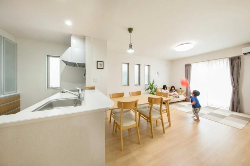 キッチンが独立せずにリビングやダイニングと一体化した空間となるため、広々とした開放感があり、近年人気が高まっています。