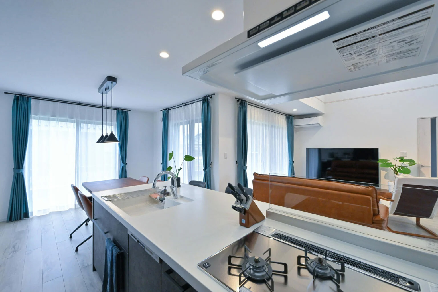 オープンキッチンは壁や仕切りがないため、調理中の匂いや煙がリビング・ダイニング側に広がりやすく、カーテンやソファに匂いがつく恐れもあります。