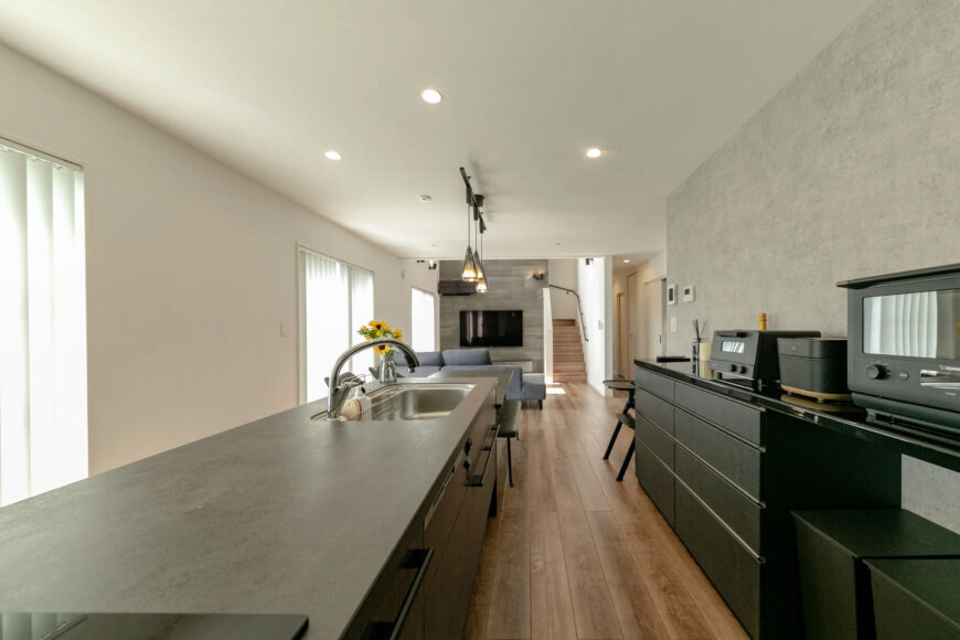 キッチンを家全体のテイストに合わせると、空間に統一感が生まれ洗練された印象に。
