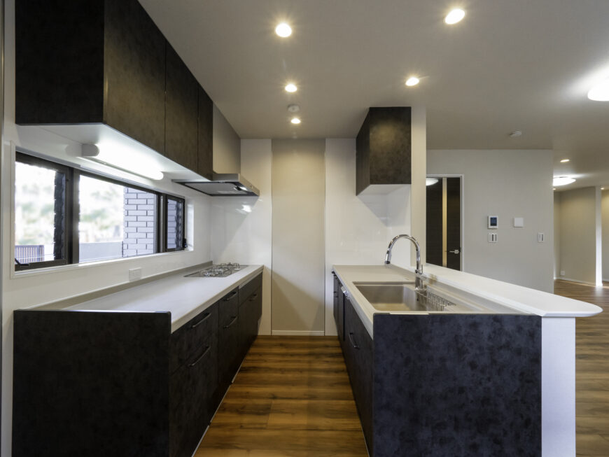 シンクとコンロが2列に分かれているタイプです。セパレートキッチンとも呼ばれ、一般的にはコンロが壁側、シンクがリビング・ダイニング側に設置されます。