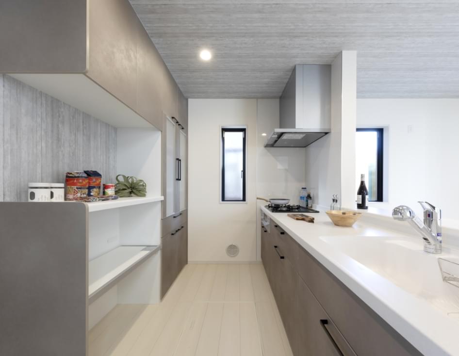 対面カウンターのあるキッチンは、家族とのコミュニケーションを楽しんだり、小さいお子様の様子を見守りながら安心して料理をしたりできます。洗練されたスタイリッシュなデザインと使い勝手を追求した設備、豊富な収納力にも大満足です。