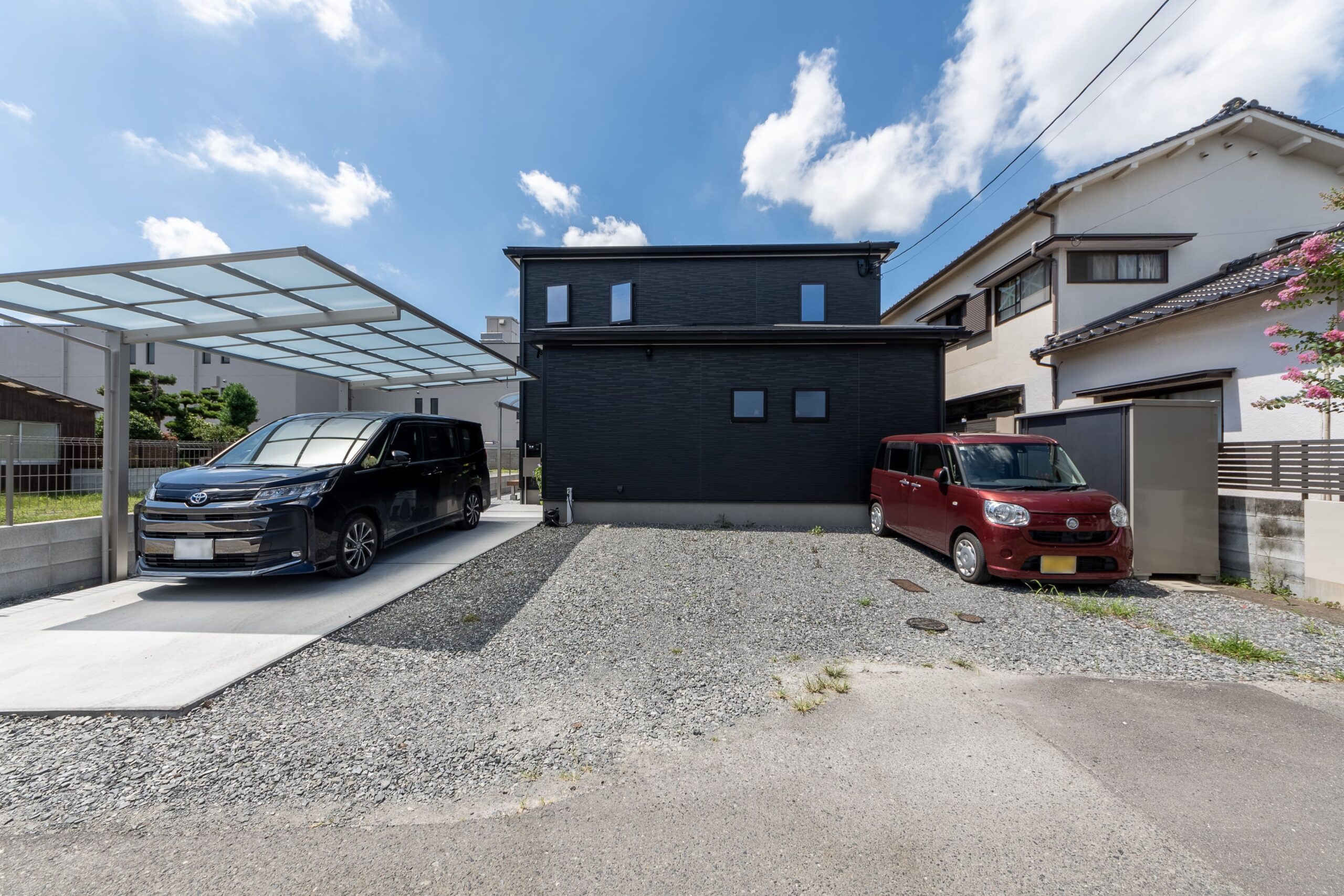 • 家族それぞれのプライベートを確保した7LDKです。帰宅後にシューズクローク~洗面~LDK~脱衣室として生活動線を意識。キチンからはリビング、和室を見渡せるようにして子供の様子を見渡せるように設計。1階は段差を無くし各部屋の出入り口は全て引き戸にしています。2階バルコニーを広く取して日中の洗濯、室内洗濯干しも考慮してホールスペースを広くしました。
