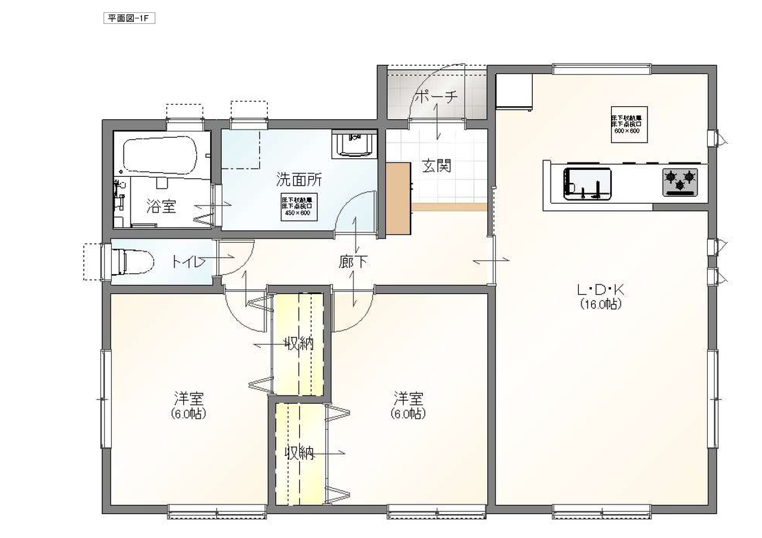 間取り・家づくりのシミュレーション平屋 2LDK 北 10,010mm 北関東 1450万円simulation