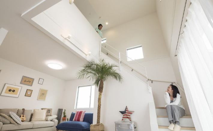 明るい吹き抜けで開放的な空間を提供。