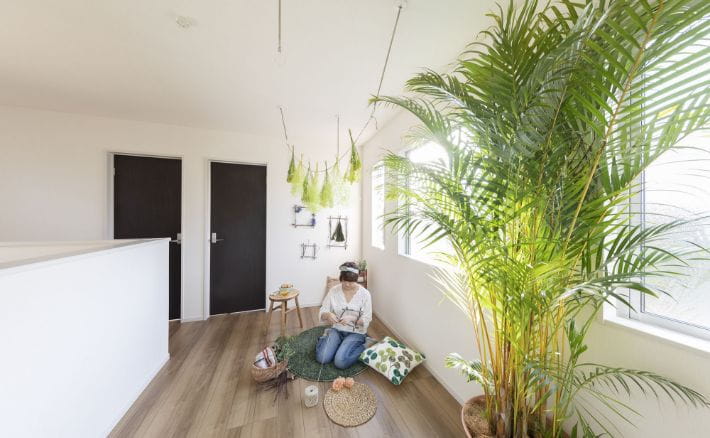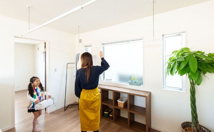 2階中央に位置するホールを室内干しやセカンドリビングとして活用。