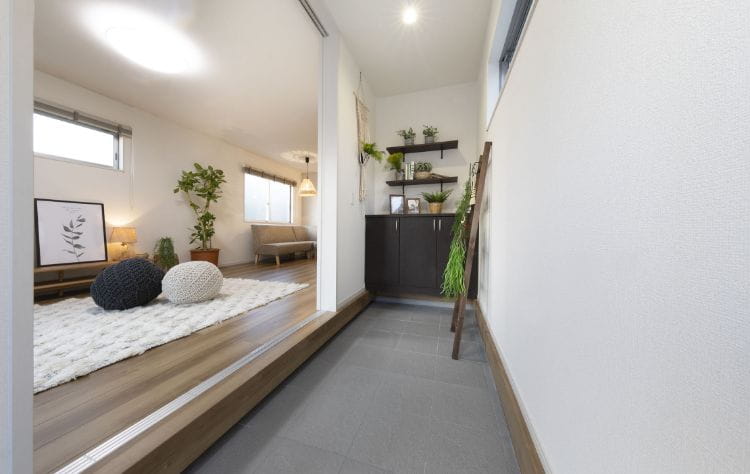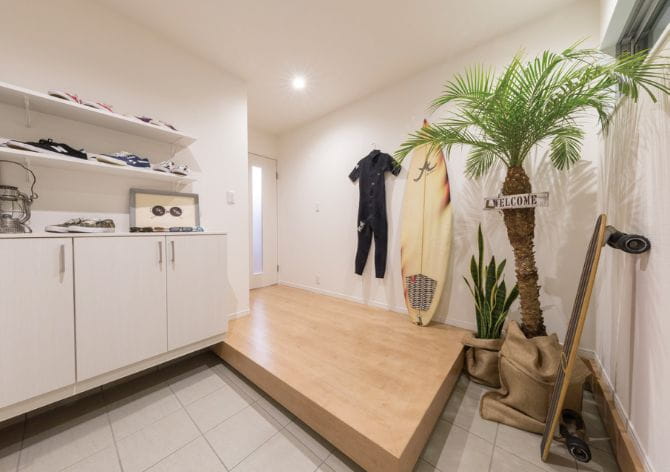 ディスプレイ収納・グリーンでやさしいエントランスなど趣味や自分らしさを表現できる空間に。