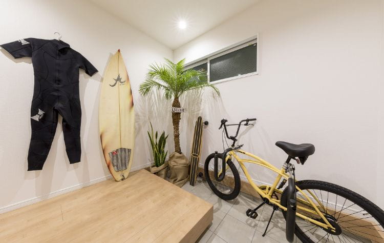 自転車も置ける広さを確保した土間玄関。