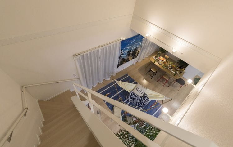 吹き抜けの階段で家族とコミュニケーションもとりやすく。