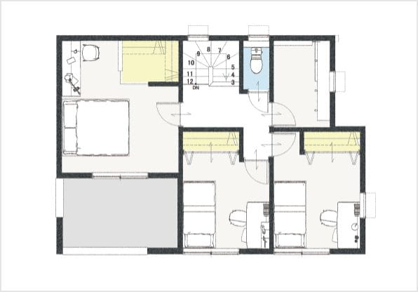 外壁面積を最小限に抑え、厳しい斜線制限など幅広い敷地に対応できるよう寄棟屋根にしました。