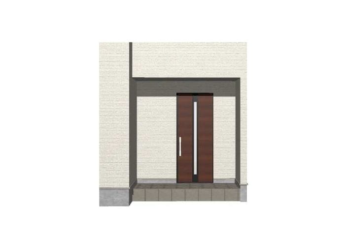 DESIGNER'S ECOは、雨樋や美観の向上とコスト削減のため、玄関のないビルトインポーチにしました。