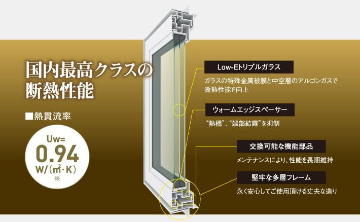 ※サッシの熱貫流率(Uw値)は、JIS A2102-1,-2及びJIS R3107に基づく計算値であり、製品の性能を保証するものではありません。