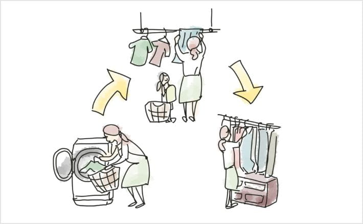 「脱ぐ・洗う・干す」を一つの空間で完結する