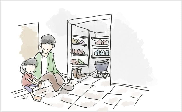 焦らず子どもと一緒に支度できる広い玄関。