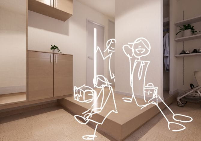 朝の忙しい時間でも広々とした玄関なら