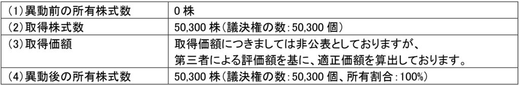 取得株式数、取得価額及び取得前後の所有株式の状況